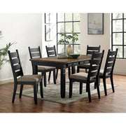 Relish in the rustic charm of this clean and simple dining set. The table features a wonderfully contrasting two-tone finish. Delightful!