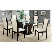 Manhattan I Dark Cherry/White Side Chair, White (2/CTN), 20"W X 24"D X 41"H, 44.1lbs. Style and comfort. These padded leatherette chairs are available in two colors, and will truly complete the style of your dining area. Features: Padded Leatherette Chair in 2 Colors Solid Wood, Wood Veneer, Others Available in 2 Table Types