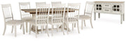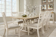 This dining set elevates the art of modern farmhouse design. Its charming two-tone aesthetic blends antiqued white and light grayish brown finishes for a feeling of relaxed comfort. Now your only worry is what to serve for dinner.